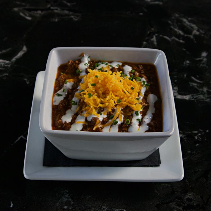 Friesian ground beef, fire-roasted tomato, jalapeño, chili de arbol, yellow onion,